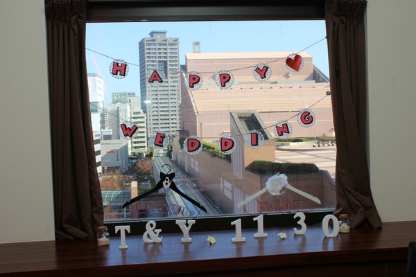 お二人がこの日のために一生懸命手作りしたフォトプロップス。