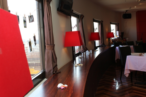 テーブルに用意された、こちらも新郎新婦手作りのフォトプロップス!