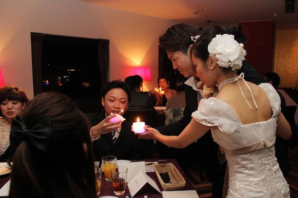 お二人がキャンドルを持って各テーブルを回って行きます。