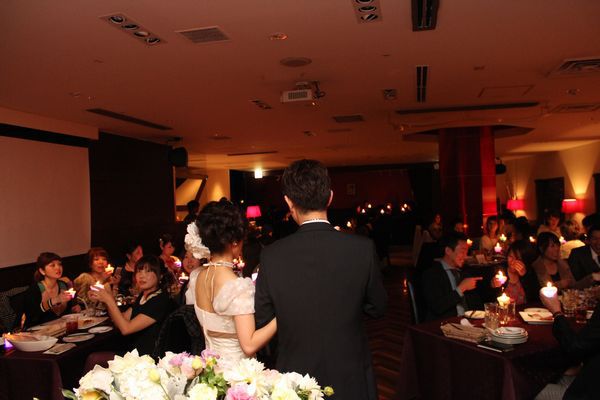 ゲスト全員のキャンドルに炎が灯り、先ほどまでのにぎやかさが嘘のように静かになった会場は幻想的な雰囲気になります。