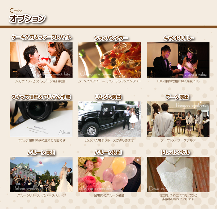 パーティーを華やか演出するオプションです。